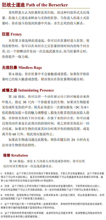 收集视频素材,麻烦各位为野蛮人的子职狂战士打分。打分不考虑角色扮演和人设构建的潜质,而更多考虑强度。不要与其他职业子职对比。(见图片)
